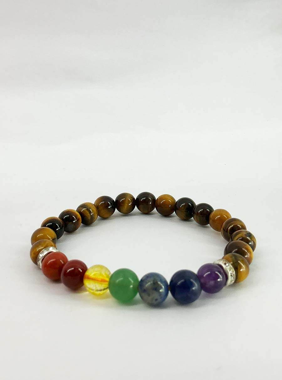 Tiger Eye with 7 Chakra Bracelet is a powerful spiritual accessory that combines the grounding and protective energy of Tiger Eye with the healing vibrations of 7 Chakra stones. It helps balance your mind, body, and soul while protecting against negative energies.