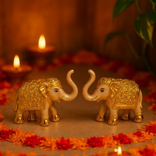 According to Vastu and Feng Shui, keeping elephants at home or office enhances harmony, attracts abundance, and removes obstacles. Place this pair at the entrance, living room, pooja room, or office desk to invite peace, success, and prosperity. It is also a thoughtful gift for housewarming, Diwali, weddings, anniversaries, and corporate gifting.