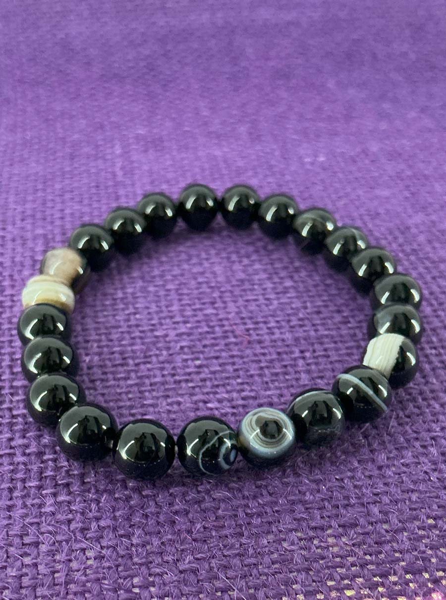 Sulemani Hakik Bracelet – a timeless gemstone accessory known for its protective and healing energies. This powerful stone is believed to absorb negative vibes, bring mental clarity, and strengthen inner stability. With its deep black and white streaked patterns, it is both spiritually significant and fashionably versatile.