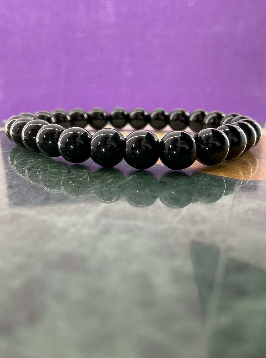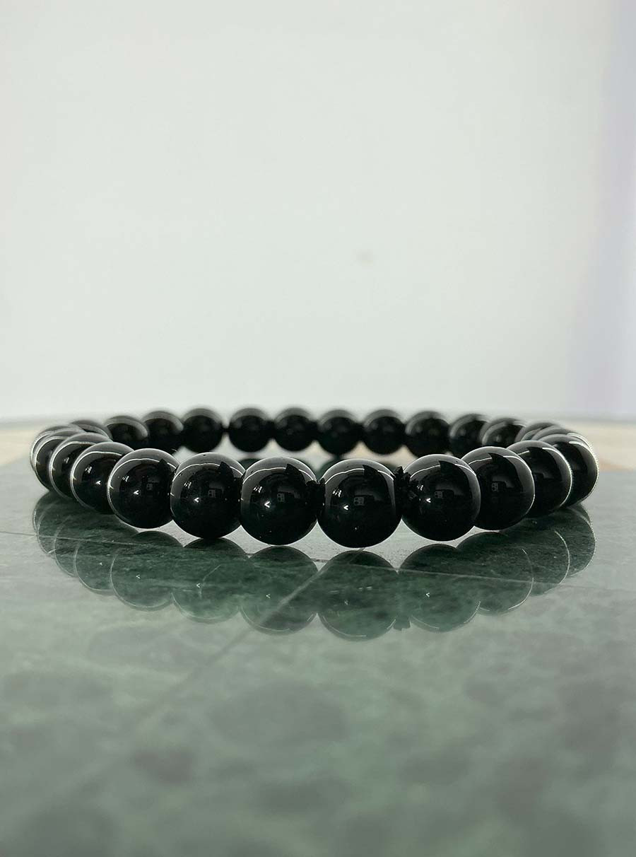 Black Onyx Bracelet – a striking gemstone accessory known for its protective and grounding energies. Believed to absorb negative energy, boost self-control, and enhance focus, Black Onyx is ideal for those seeking inner strength and resilience. Its bold, deep black appearance makes it a timeless fashion statement.